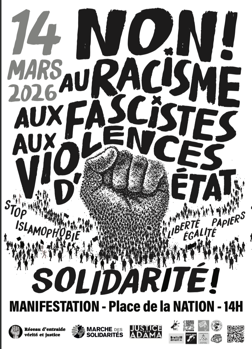 - Samedi 14 mars 2026 : Marche des solidarités contre le racisme et le fascisme…