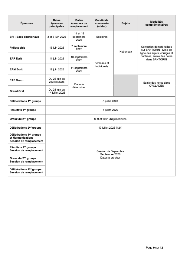 Ces épreuves concernent les candidates de première générale et technologique. - Épreuve de philosophie : 15 juin 2026