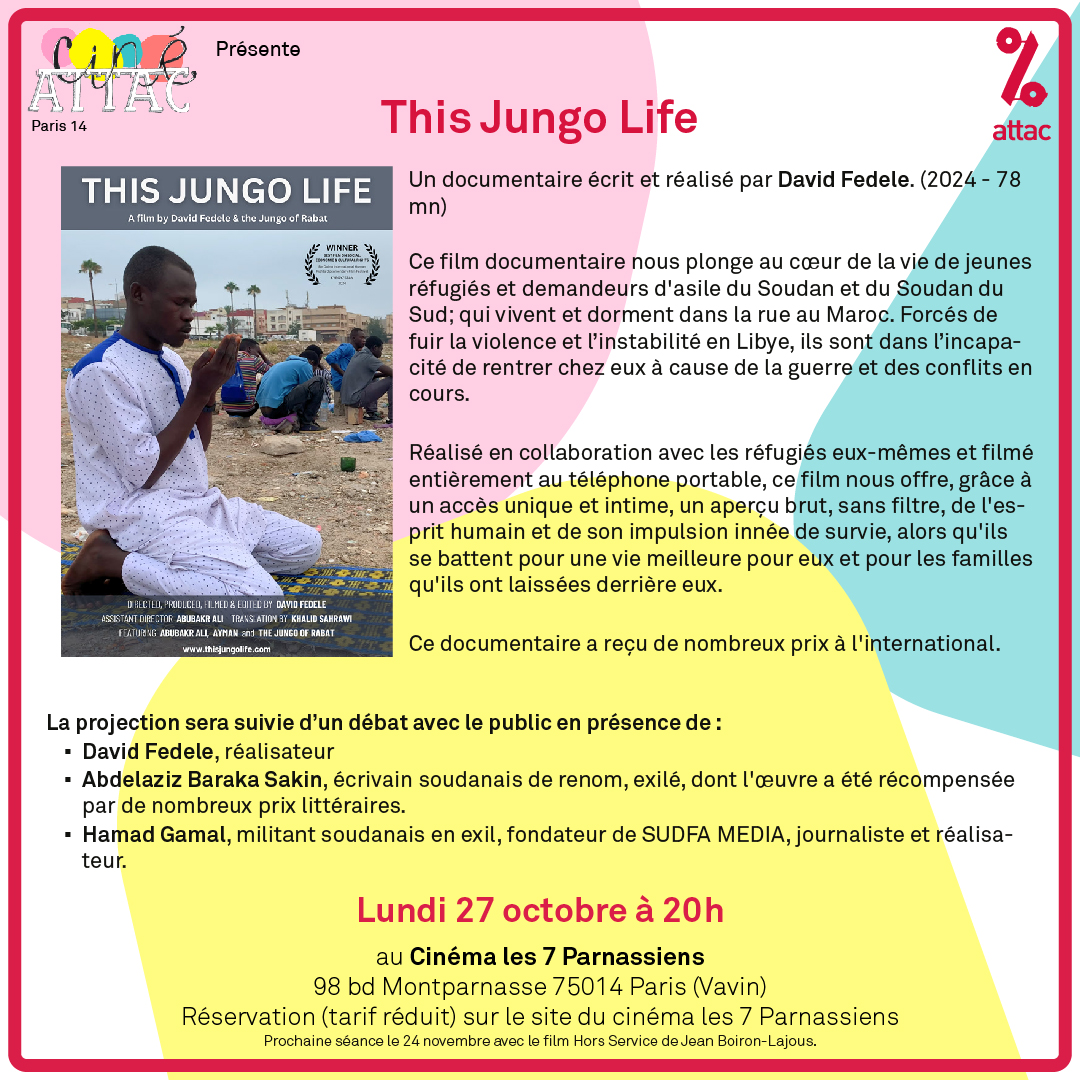 Mobilisations internationales : 27 octobre 2025 : projection du documentaire « This Jungo life »