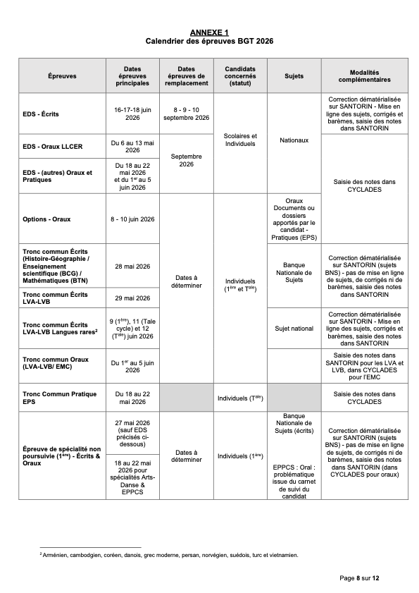 Ces épreuves concernent les candidates de première générale et technologique. - Épreuve de philosophie : 15 juin 2026